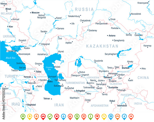 © Porcupen, Fototapeta premium Caucasus and Central Asia Map - Vector Illustration