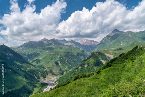 © skostep, Naklejka premium Caucasus Mountains in Kazbegi, Georgia