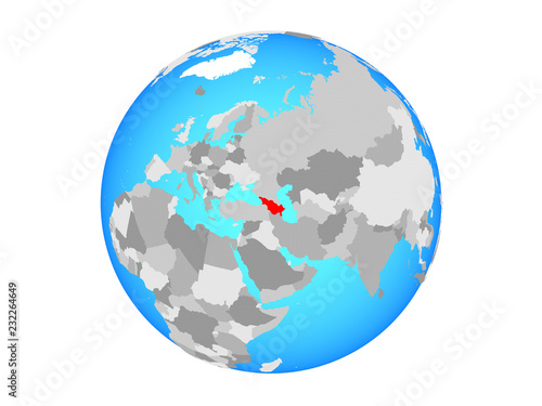© harvepino, Fototapeta premium Caucasus region on blue political globe. 3D illustration isolated on white background.
