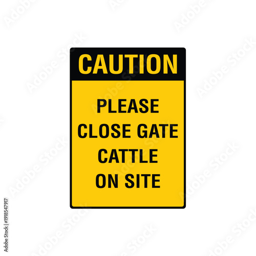 Fototapeta premium Caution Please Close Gate Livestock Sign