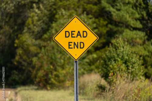 © Duane, Obraz premium Caution road sign with trees in background