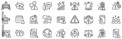 Obraz premium Caution sign, Exclamation mark, Risk attention. Warnings line icons. Danger alert, error caution, urgent information line icons. Safety risk, construction warning, documentation error. Vector