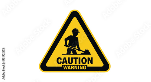 Fototapeta premium Caution Warning Sign with Worker Silhouette and Alert Symbol.