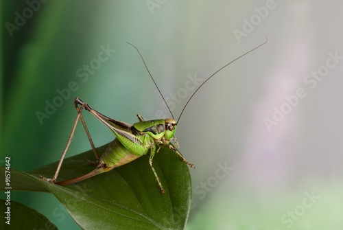 © effe64, Fototapeta premium Cavalletta verde posata su foglia verde