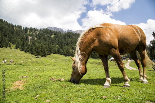 © alepvfoto, Fototapeta premium Cavallo sulle Dolomiti