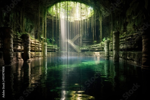 Fototapeta premium Cavernous cenotes outdoors nature plant.