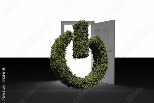 © vectorfusionart, Naklejka premium Ccomposite image of turn off sign and door on floor