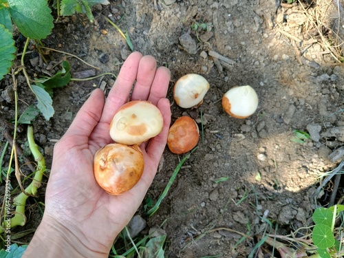© Kinga, Fototapeta premium Cebulki tulipanów na dłoni do wysadzania jesienią