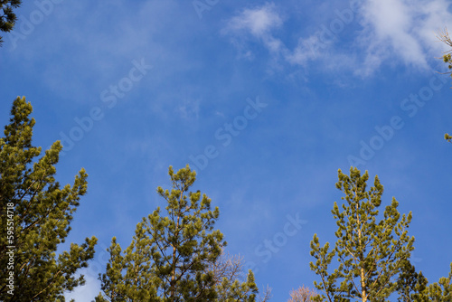 © Tungalag, Obraz premium Cedar tree tops against blue sky