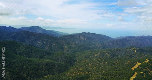 © Kateryna, Fototapeta premium cedar valley. landscape of mountains in the mist Cyprus.Drone Point of View Platres in the Troodos. Cyprus. Aerial View. Flying over the mountains