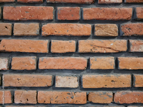 © Joanna, Fototapeta premium Ceglana , murowana pomarańczowa ściana budynku loftowego, industrialna architektura