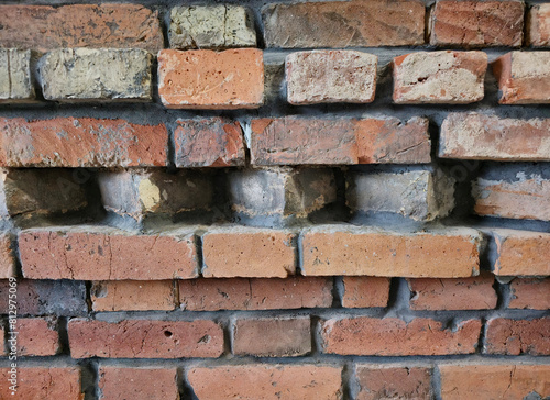 Obraz premium Ceglana , murowana pomarańczowa ściana z detalami ceglanymi budynku...