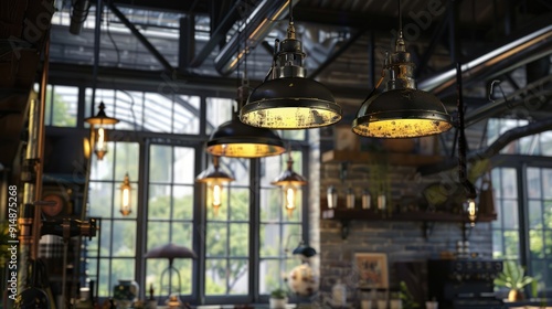 Obraz premium Ceiling-mounted lamp with cozy loft decor