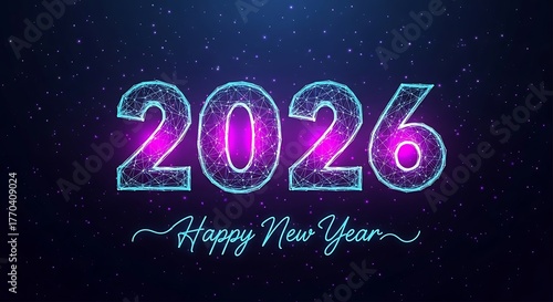 Fototapeta premium Celebrate a dazzling New Year with this futuristic 2026 design, perfect for...