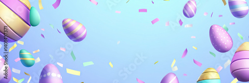 Fototapeta premium Celebrate Easter with colorful eggs and confetti in a vibrant flat illustration