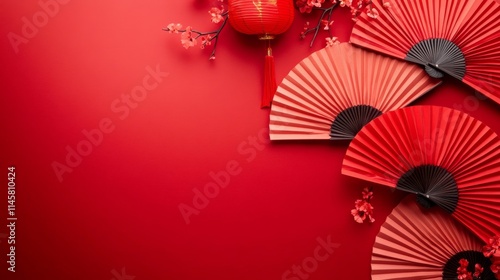 © Julia, Obraz premium Celebrate Happy Chinese new year background concept. Top view.