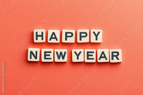 Obraz premium Celebrate joy new beginning cheerful letter tiles spelling Happy New Year vibrant background.
