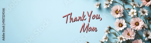 © pisan, Naklejka premium Celebrate Mother's Day with a gentle blend of spring's fresh blooms and heartfelt gratitude, captured in a serene scene of wildflowers and a sky that is radiant, featuring a handwritten Thank You