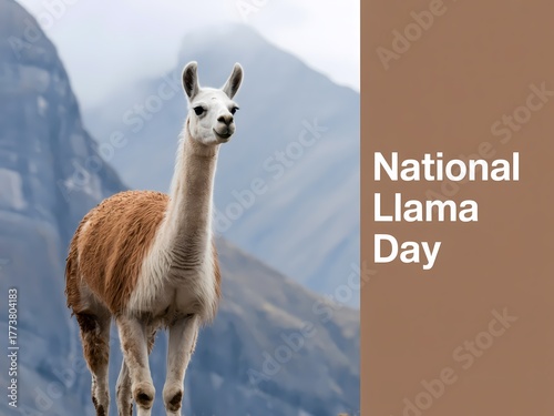 © Hriday, Obraz premium Celebrate national llama day with a majestic llama standing proudly in the mountains