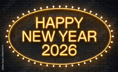 Obraz premium Celebrate New Year 2026 with a Neon Sign yellow background