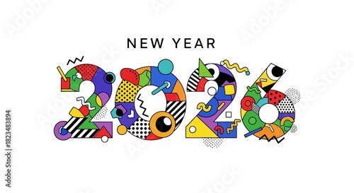 Obraz premium Celebrate New Year 2026 with this vibrant and modern geometric design