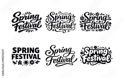 © Viacheslav, Fototapeta premium Celebrate spring festival. Set lettering. harmonious lettering variations of the same emblematic concept, each with different artistic