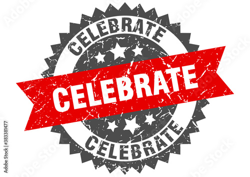 Obraz premium celebrate stamp. grunge round sign with ribbon