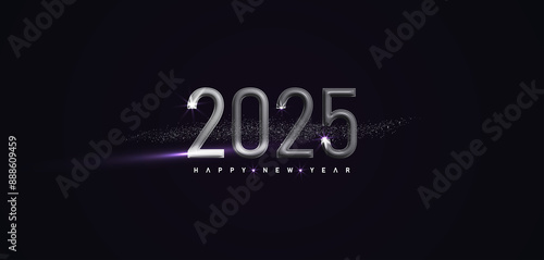 Fototapeta premium Celebrate the arrival of 2025 with silver numbers and sparkles