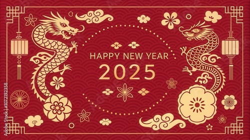 Fototapeta premium Celebrate the Joy of the Chinese New Year 2025 With a Vibrant Red Banner....