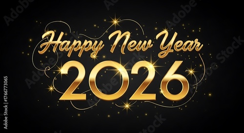 Fototapeta premium Celebrate the New Year 2026 with elegant golden text and sparkling festive...