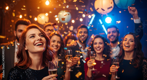 © Siti, Obraz premium Celebrate the New Year with Friends Happy New Year Party Cheers Celebration Festive Friends Friendship Togetherness Joyful Moments New Years Eve Party Night Club