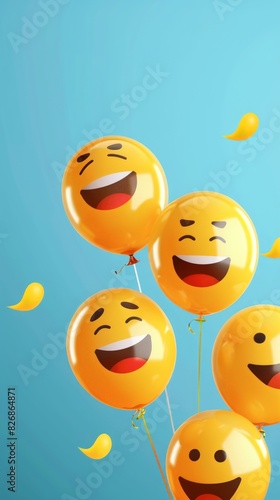 © Palung, Fototapeta premium Celebrate world laughter day. Joyful emoticon balloons. Copy space