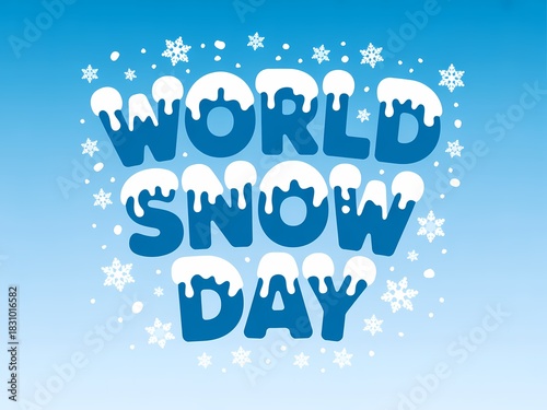 © Hriday, Fototapeta premium Celebrate world snow day with festive blue lettering and falling snowflakes on a gradient background