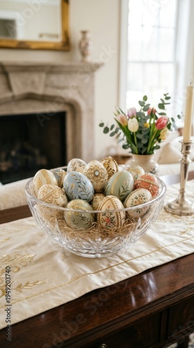 Fototapeta premium Celebrating easter holiday with decorative ornamental eggs