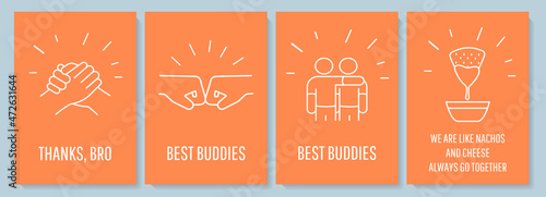Fototapeta premium Celebrating joy of true friendship postcard with linear glyph icon set....