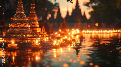 © ChiffonCake, Obraz premium Celebrating light festival traditional temple photography evening close-up cultural significance