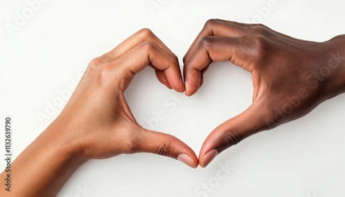 Obraz premium Celebrating Love and Unity Diverse Hands Forming a Heart Shape Studio Setting Close-Up Perspective Emotional Connection