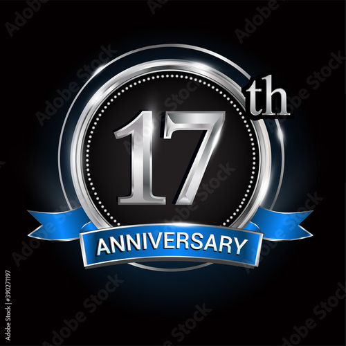 Fototapeta premium Celebrating 17th anniversary logo. with silver ring and blue ribbon.