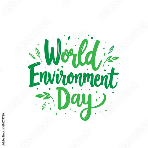 Obraz premium Celebrating World Environment Day with Green Typography and Leaf Accents