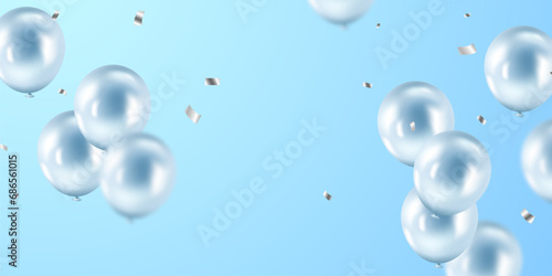 © HNKz, Obraz premium Celebration background with beautifully arranged blue balloons. Vector 3D illustration design