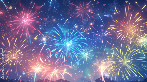 © Adja Atmaja, Naklejka premium celebration colored firework light up the sky