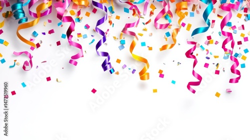 Fototapeta premium Celebration confetti and streamers party atmosphere festive decor bright...