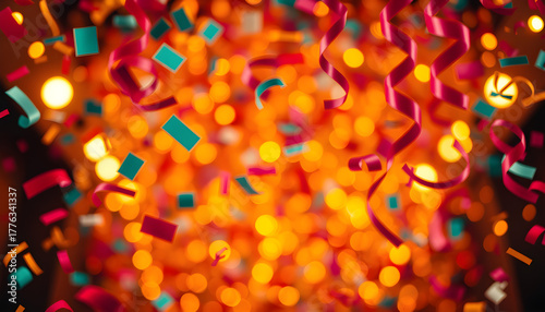 Naklejka premium Celebration Confetti Streamers Bokeh Lights