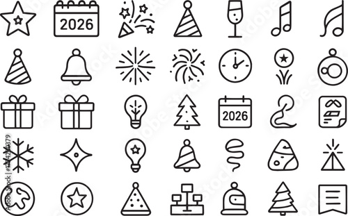Obraz premium Celebration new year and christmas line icons set