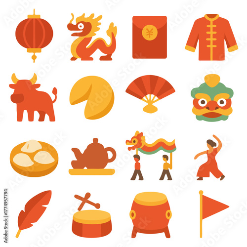 Fototapeta premium Celebration of Chinese Culture: An array of symbolic icons, showcasing the...
