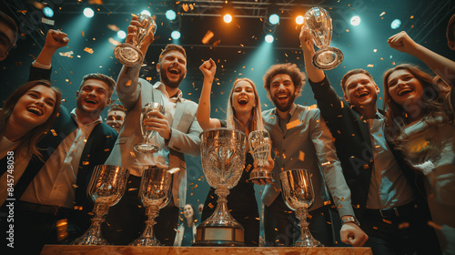 © Another vision, Obraz premium Celebration of Victory with Trophies and Confetti