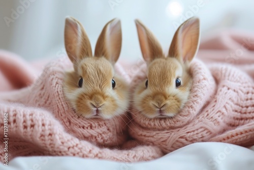 Obraz premium Celebration Valentine's day, two rabbit with heart shapes