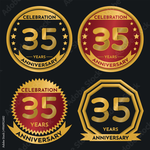 Fototapeta premium Celebration 35 Year Anniversary - Gold Seals, 4 Variations, Ruby and...