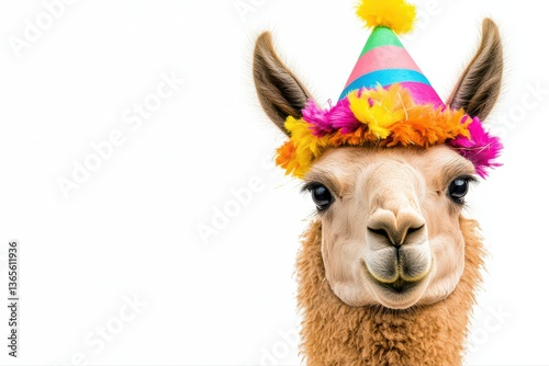 Obraz premium Celebratory alpaca wearing colorful party hat