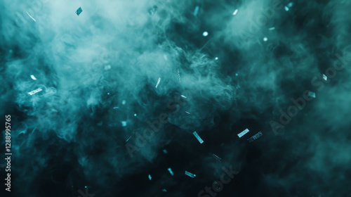 Obraz premium Celebratory confetti floating amidst mystical dark smoke aesthetic background